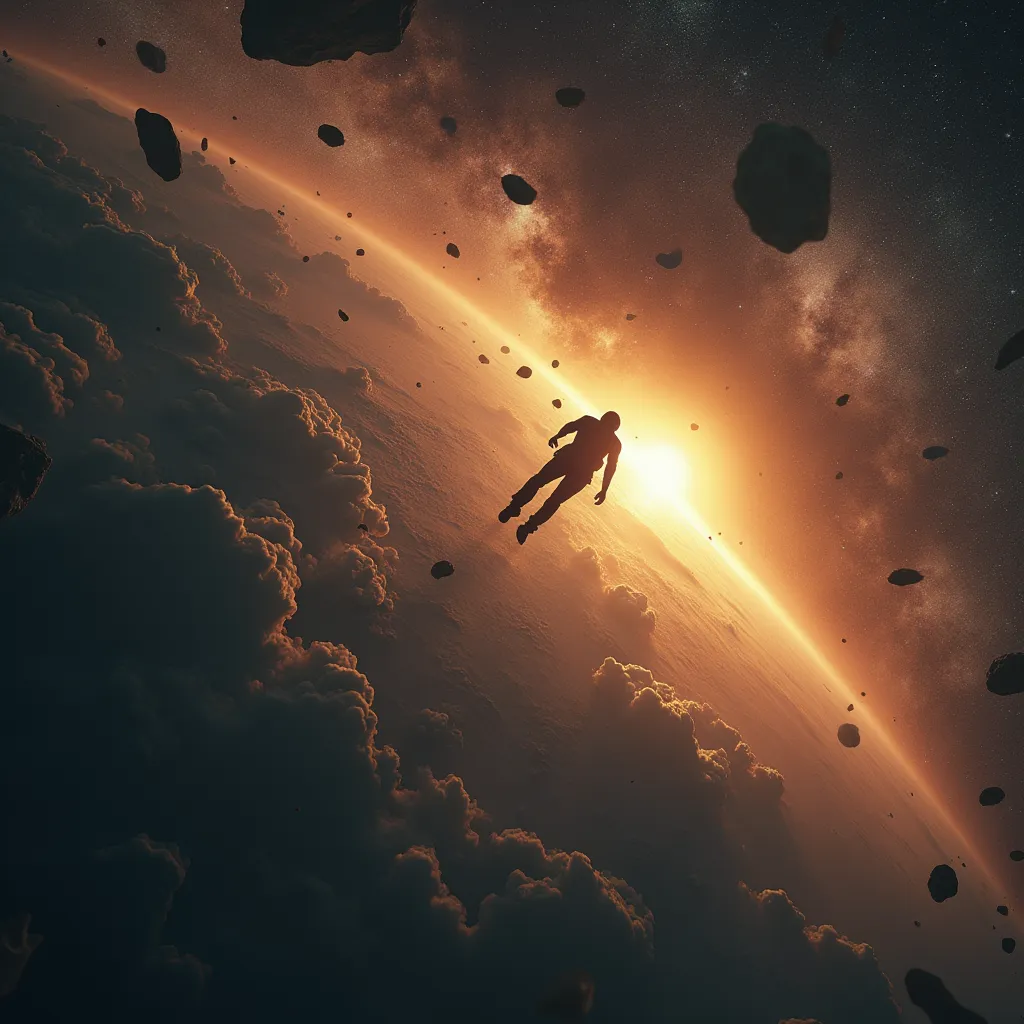Imagine a heart-stopping, pulse-quickening narrative that revolves around an audacious, brave man who, against all odds, finds himself tumbling unexpectedly from the farthest, unchartered corners of the vast universe. Under circumstances yet shrouded in mystery, visualize this sole traveller as he breaches the threshold of the atmosphere, hurtling towards earth with earth-shattering force and an inevitability of destiny.